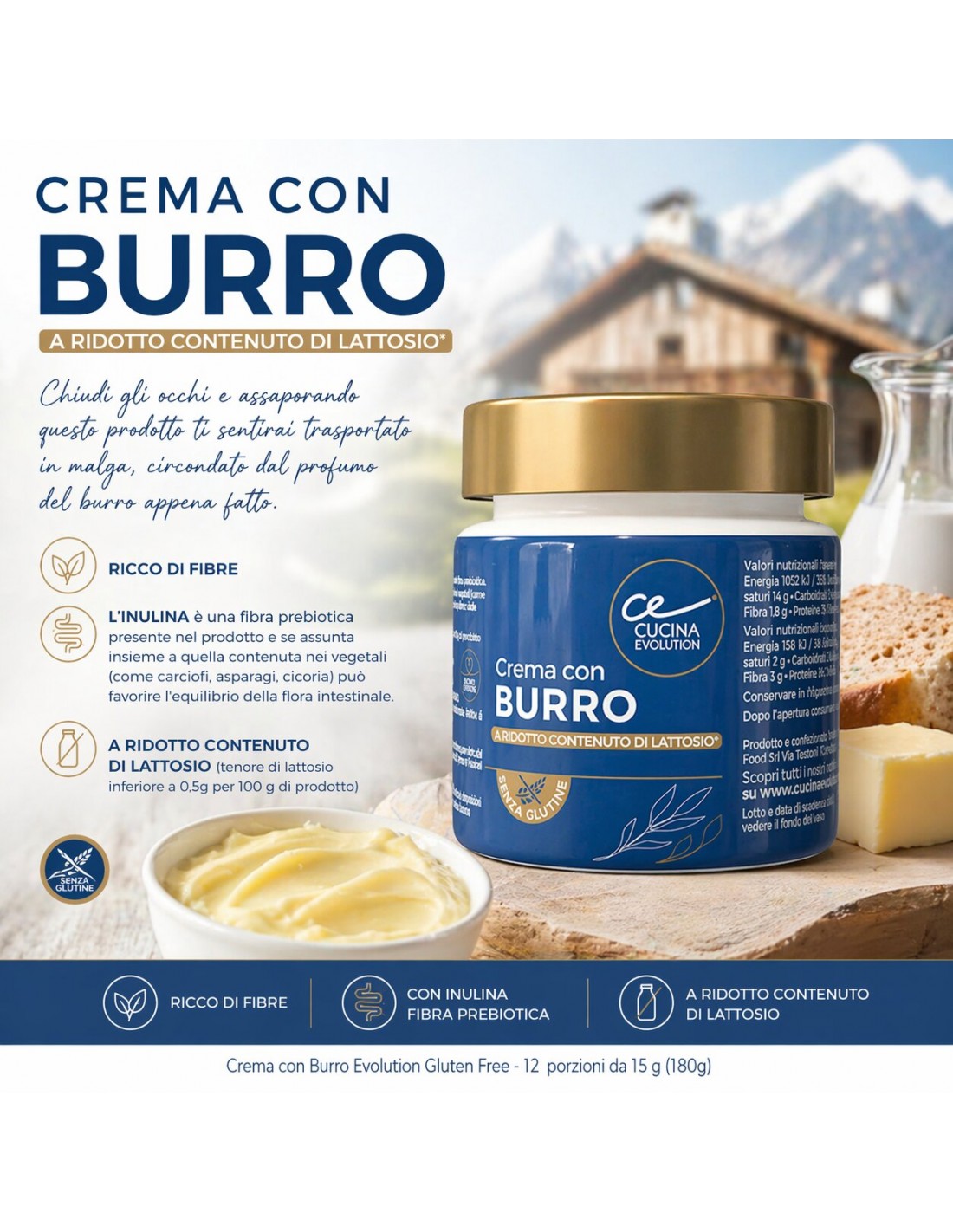 - Crema con Burro Evolution Gluten Free - 12 porzioni da 15 g (180g)