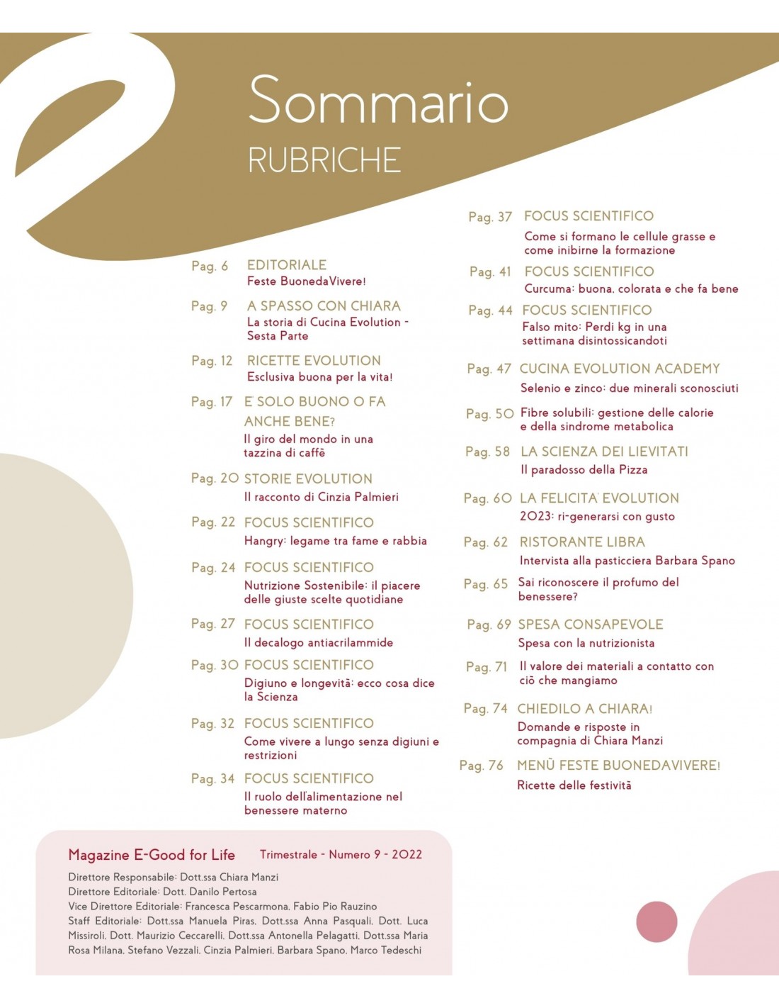 Un numero ricchissimo di contenuti scientifici e di collaborazioni con medici, nutrizionisti, farmacisti, psicologici, cuochi, chef, produttori, per offrirvi contenuti esclusivi e di altissimo spessore scientifico, per vivere sempre felici e in salute, grazie alle giuste conoscenze.