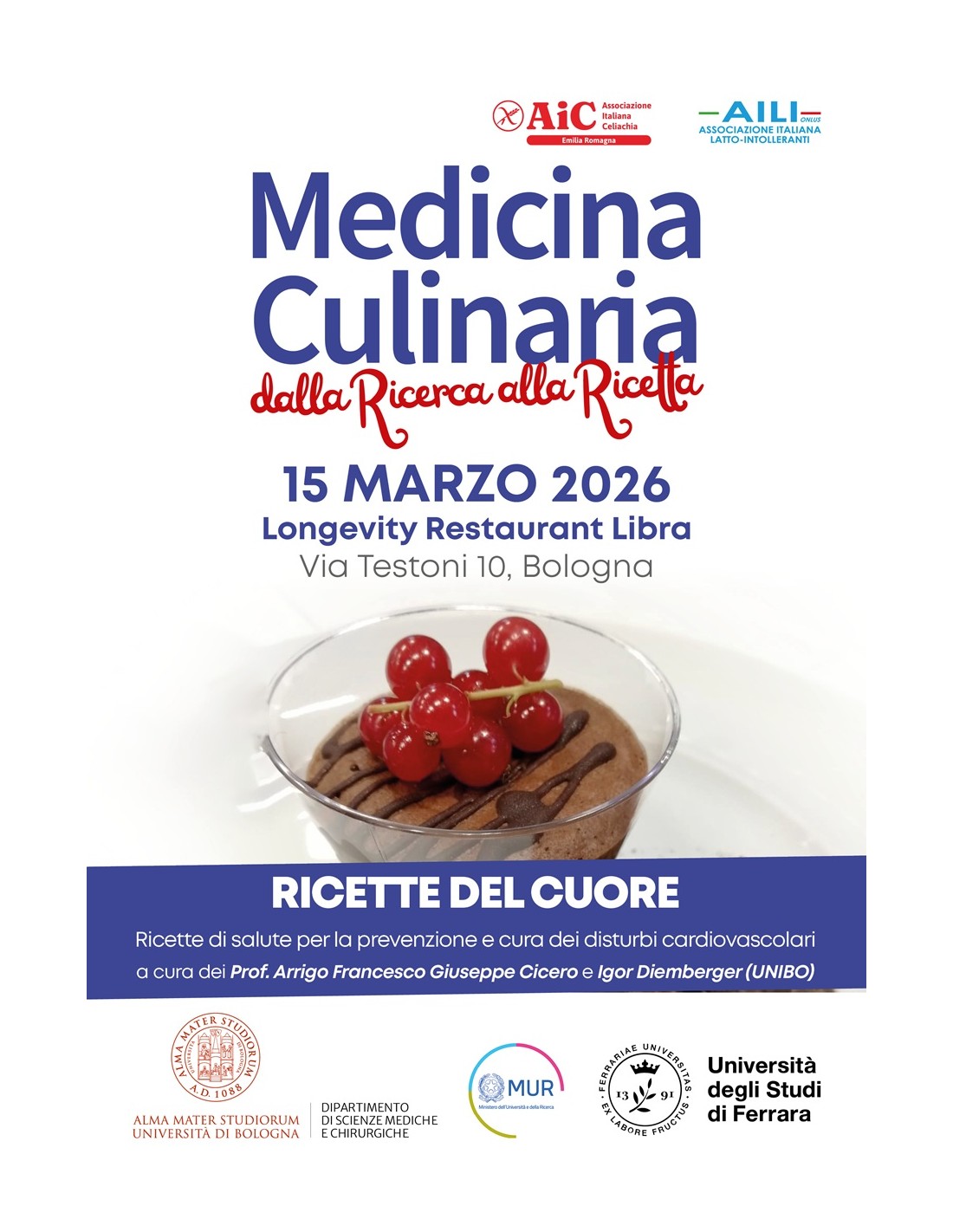 Impara a cucinare piatti che fanno bene al cuore, senza rinunciare al piacere della tavola. Insieme ai professori Cicero e Diemberger, approfondiremo la relazione tra alimentazione e rischio cardiovascolare, con strategie pratiche e ricette funzionali.