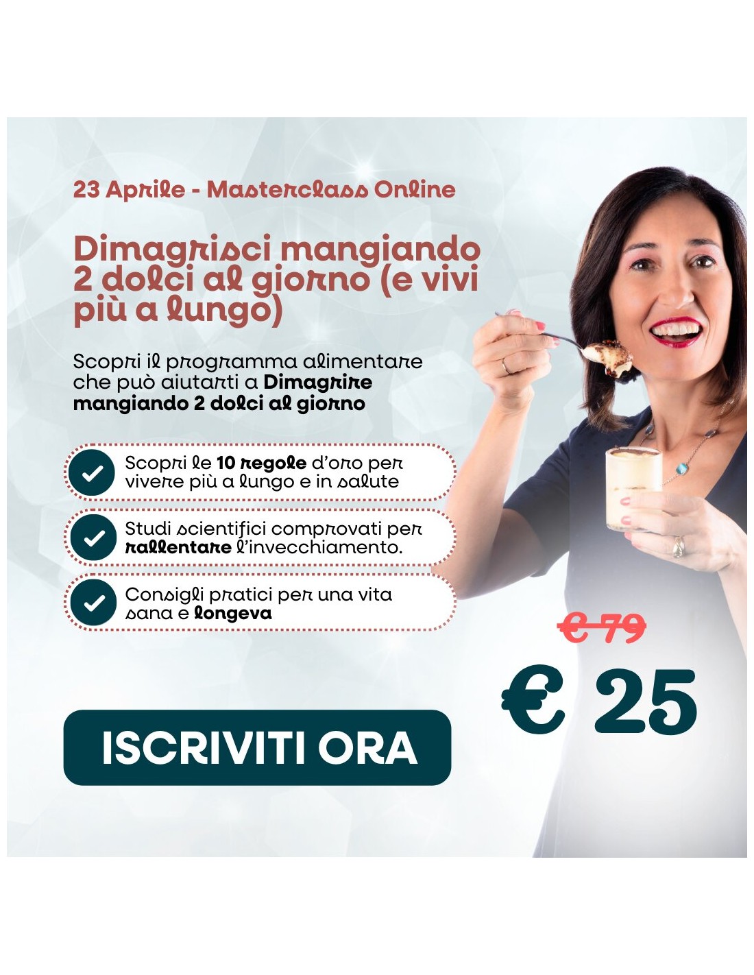 23/04 – Corso Online:Dimagrisci mangiando 2 dolci al giorno (e vivi più a lungo)