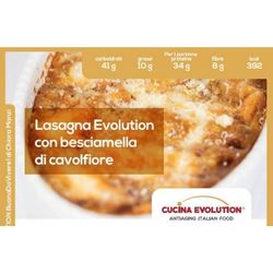 Uno dei piatti più simbolici della tradizione italiana rivisitato in chiave Evolution. Un primo piatto con meno grassi e più fibre di un’insalatona condita con un cucchiaio d’olio. La besciamella di cavolfiore arricchisce il piatto di fibre mantenendo la delicatezza nel gusto. E’ importante far cuocere il ragù per almeno 30 minuti: le lunghe cotture del pomodoro spezzano il licopene, antiossidante amico della pelle e potente antitumorale, e lo rendono più attivo. Inoltre l’abbinamento con l’olio extra vergine di oliva ne aumenta l’assorbimento.